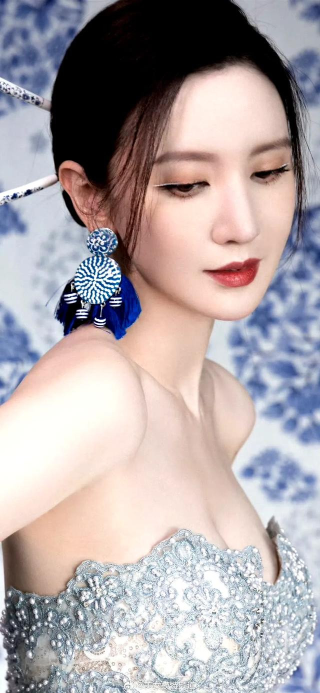 张萌青花瓷蕾丝裙优雅写真